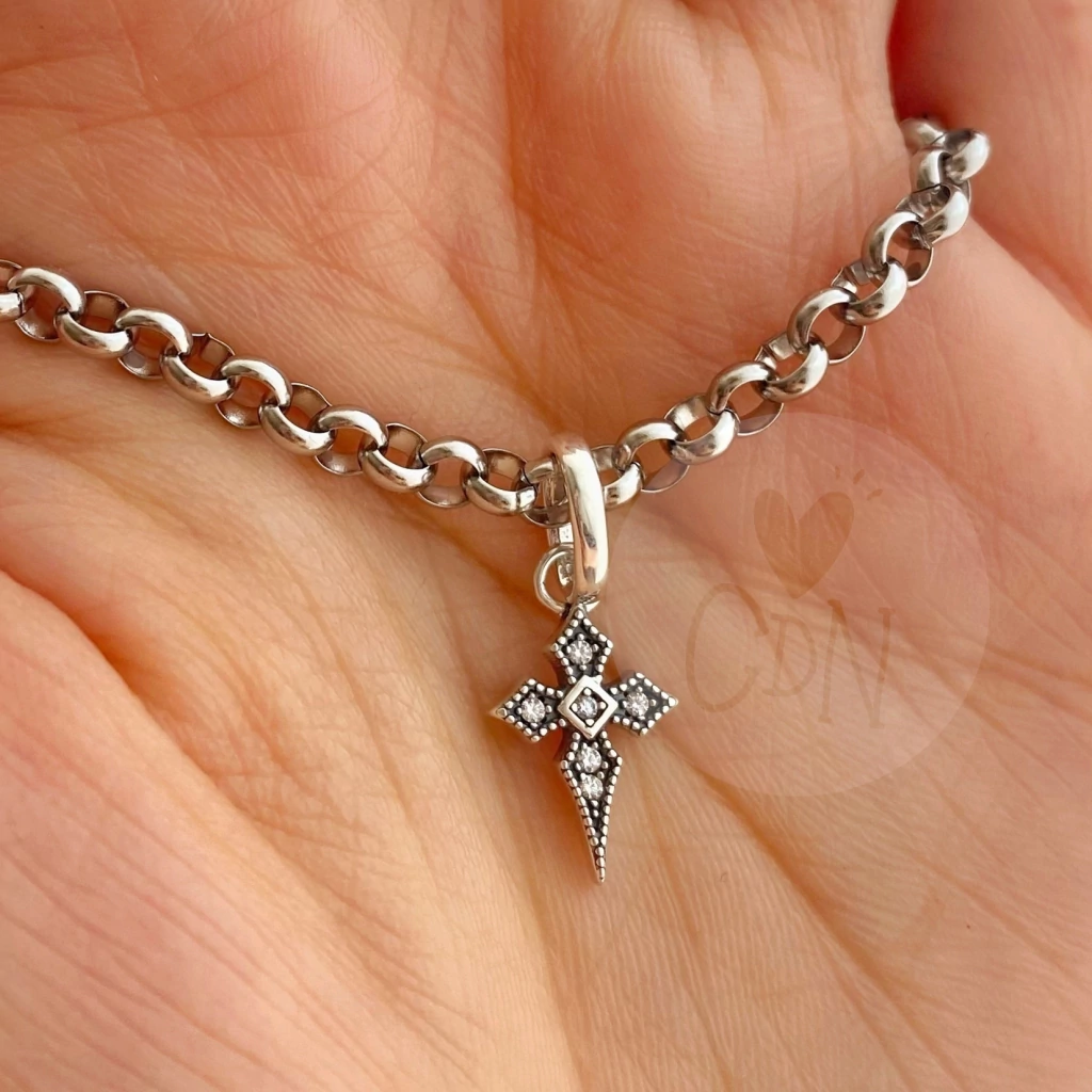Este dije charm de plata 925 rodinada tiene la forma de la cruz de Santiago o Galicia y representa la protección, la fe y el honor 🙏