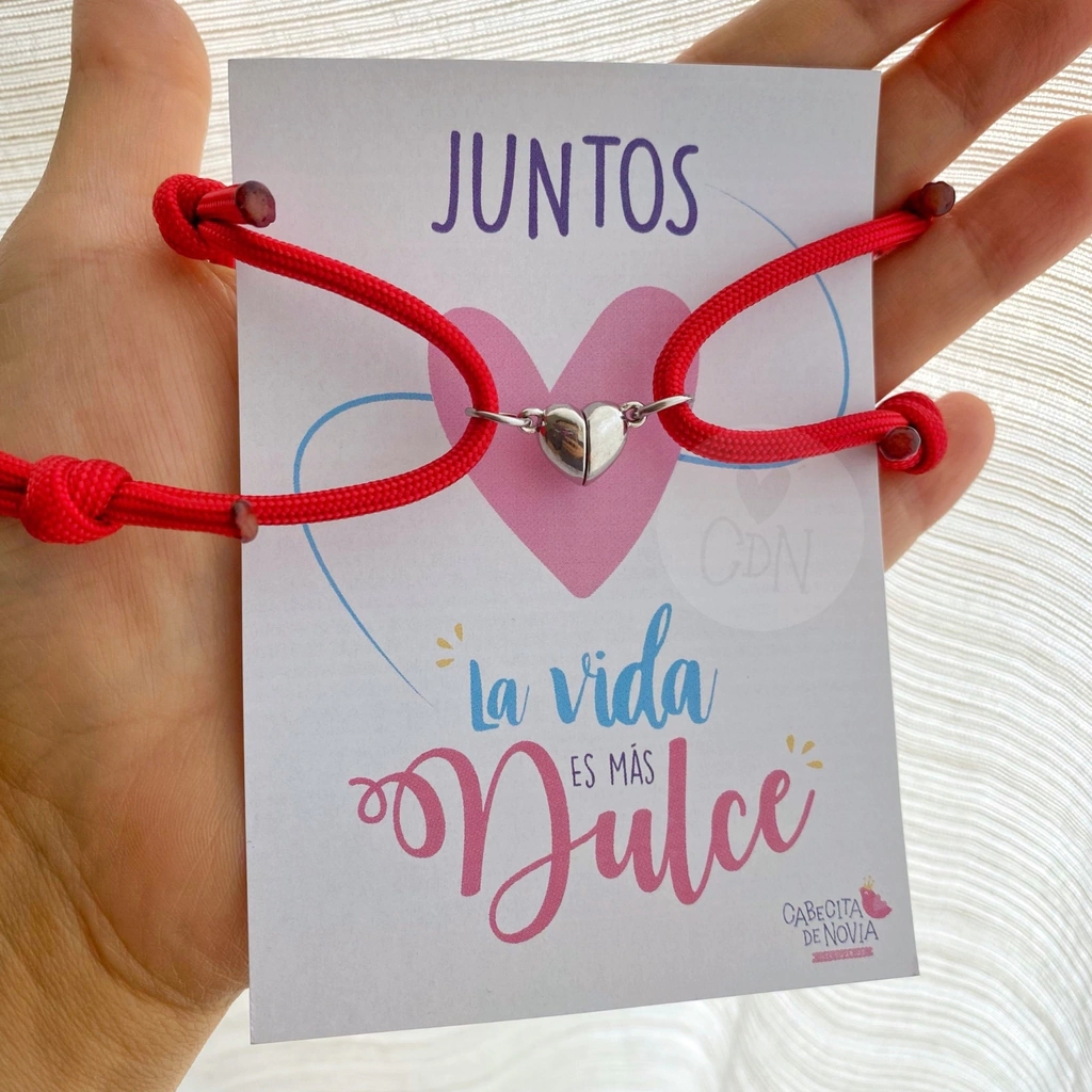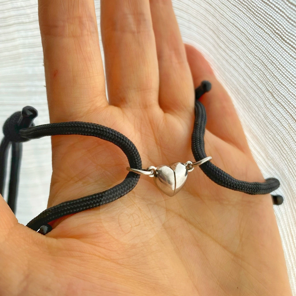 Pulseras confeccionadas con hilo de nylon/cadena de acero quirúrgico e imanes de alpaca acerada.