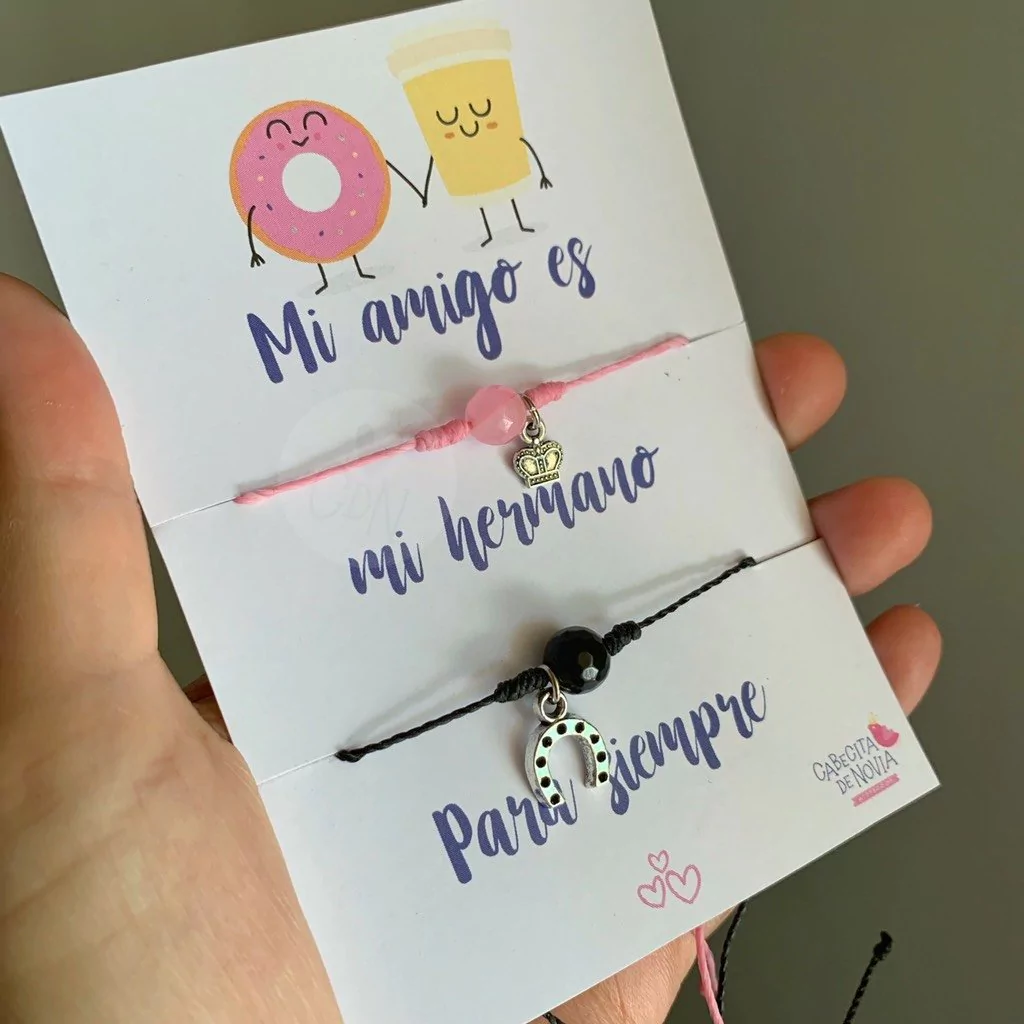 El precio es por el par de pulseras, incluye su cartonchito exhibidor.